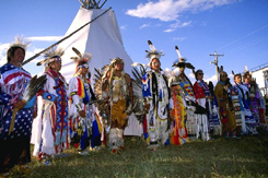 There are many different types of powwow dances. During InterTribal dancing, everyone from all the different tribes and all age groups dance together. Even though they are dancing as a group, each dancer moves independently to the beat of the drum - expressing his or her own feelings and creating a unique style.