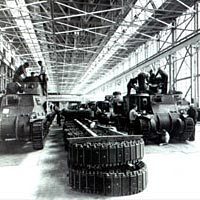 Owned by the government and run by Chrysler, the plant received its first contract to build 1,000 M3 tanks in 1940. The government accepted the first M3 on April 24, 1941, while the plant was still under construction. The delivery was marked by a festive occasion, broadcast over a nationwide radio hook-up. VIPs and plant workers cheered as the tank fired its guns, smashed telephone poles, and destroyed a mock-up house. The plant also built M4 Sherman tanks, which have a turret mounted 75-mm gun. The plant set an all-time monthly production record by delivering 896 M4s in December 1942. As the war ended, the government suspended tank production.